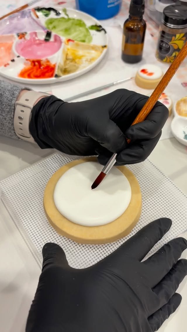 Ten hexagon cookies painted with one cohesive design. Learn more…