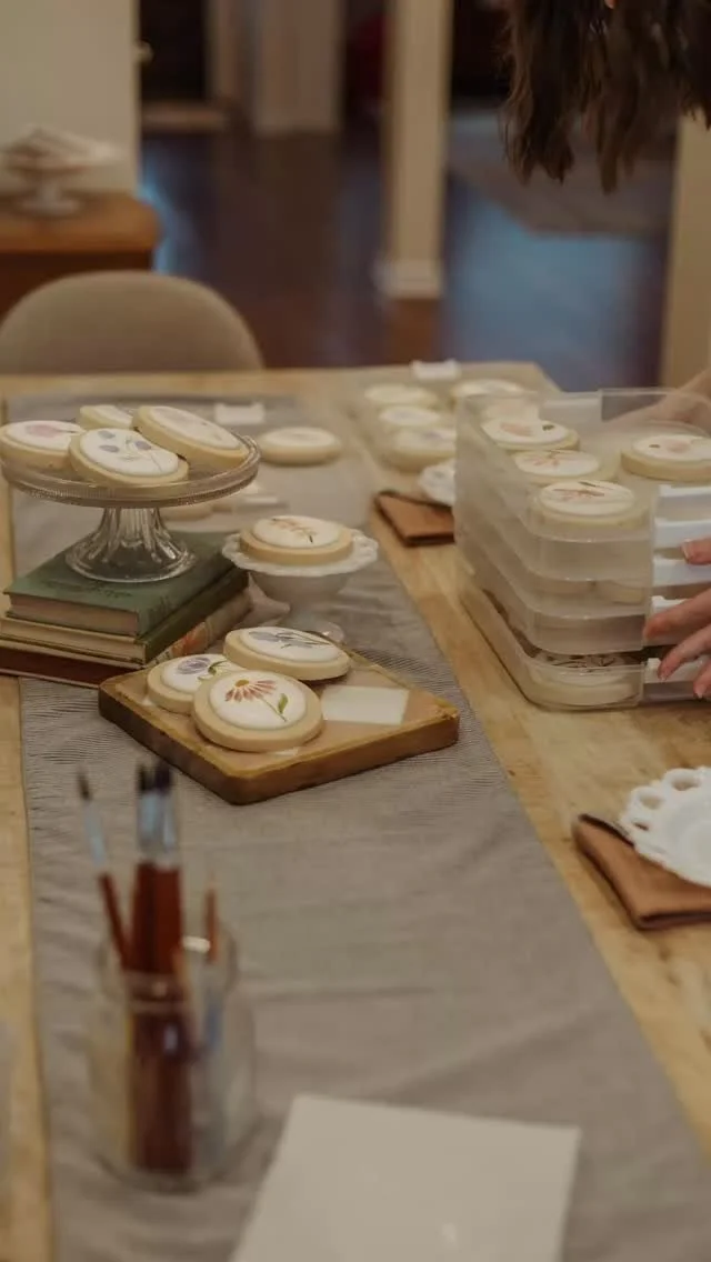 A Chicago-based business specializing in watercolor floral designs on iced shortbread cookies.